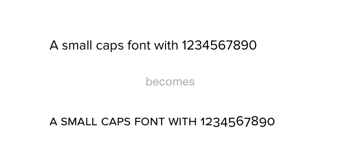 and that would give you a font that would turn "A small caps font with 1234567890" into: