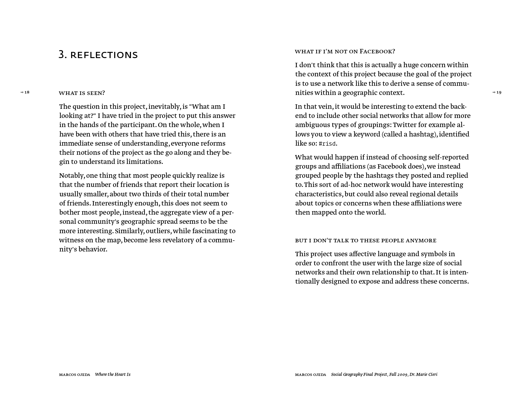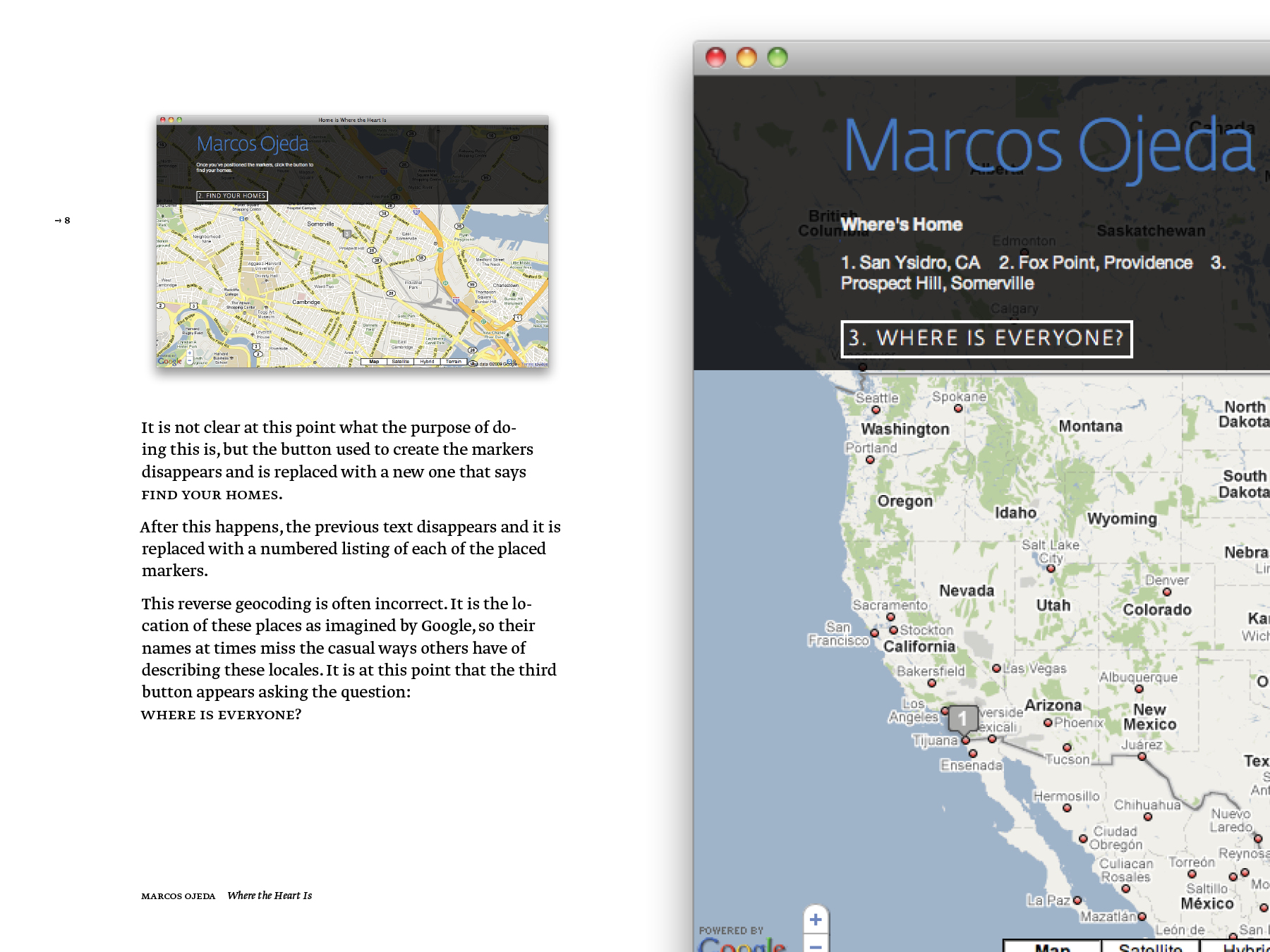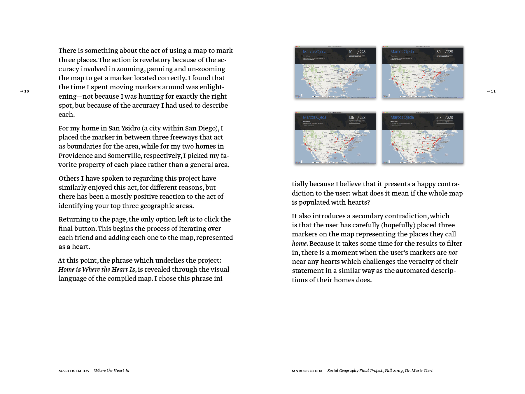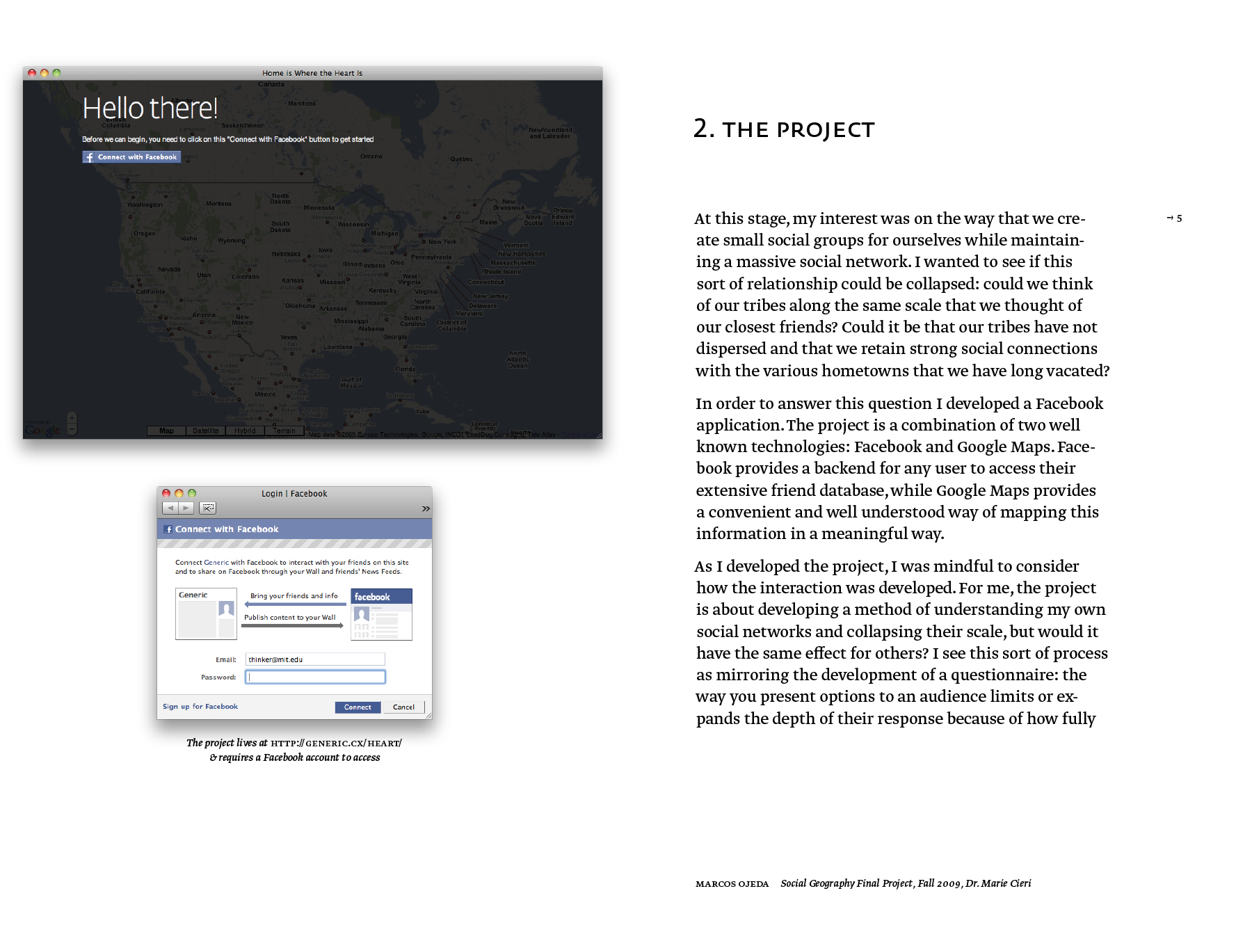 "Where The Heart is" is a project that combines two separate technologies, Google Maps and Facebook, to examine the social diasporas that are formed in modern day social networks.