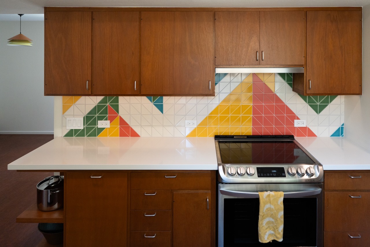 Not content to simply use a single color or an alternating pattern, we decided to attempt a more deliberate mosaic, but the challenges of doing so quickly surfaced: how big is the canvas, how does that translate to tiles, how should modules be laid out, what are the effects of 3 vs 4" tiles, how much tile should we order, etc.