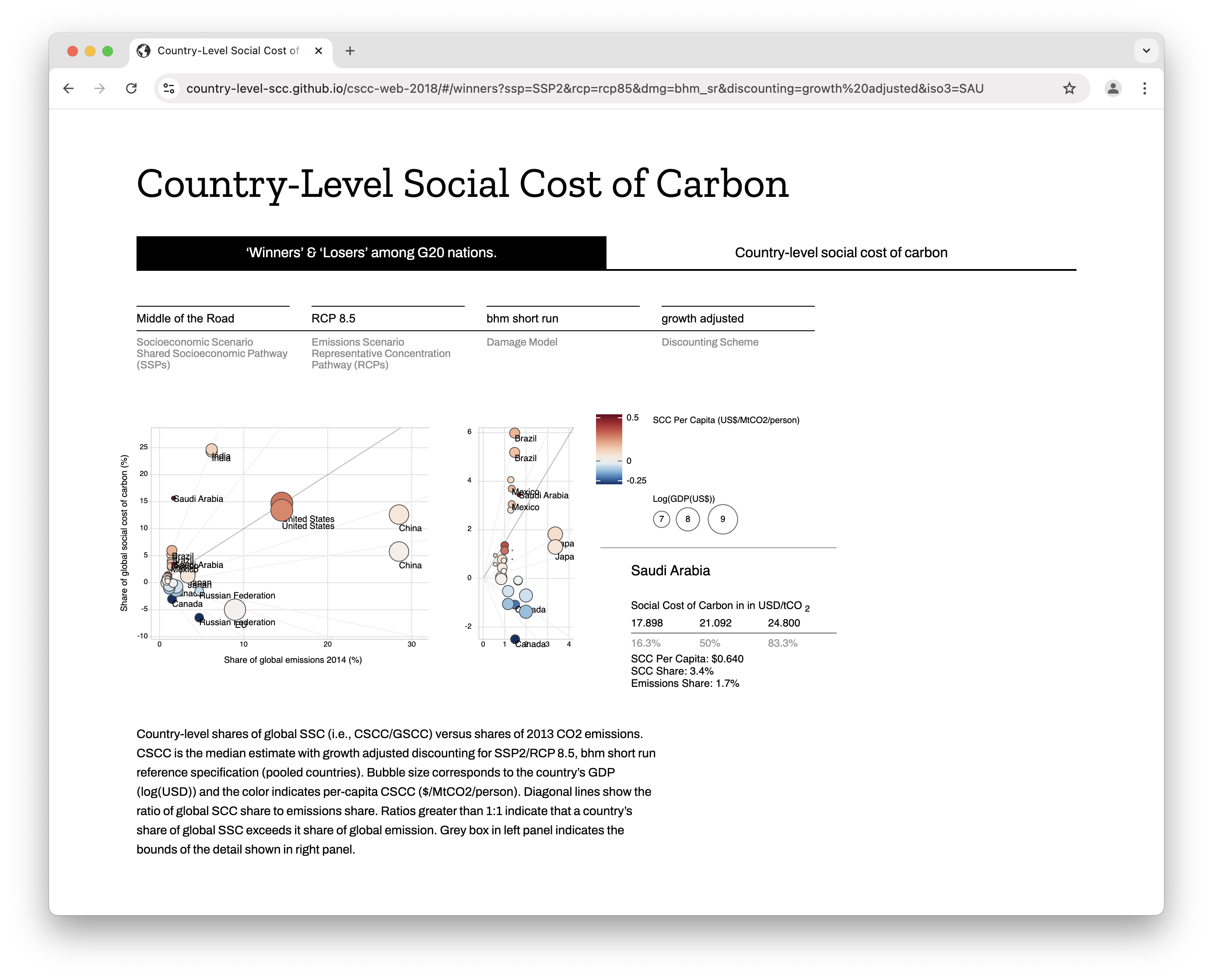 In order to prepare interactive figures for a Nature Climate Change paper1 on the social cost of carbon, it was necessary to show a large quantity of country-level data under numerous parameters.