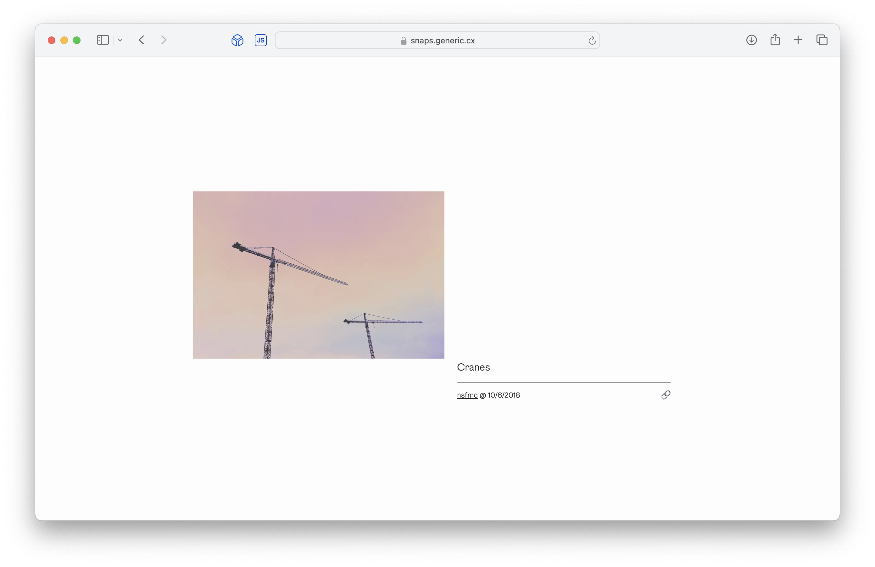 among other modern luxuries, snaps serves opengraph preview content, images are resized and compressed using optimized formats, and mobile friendly ui with dark-mode css support. login is entirely handled via passkeys.