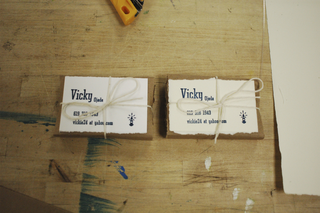 The first image here is a business card that i made for my sister, printed using two sizes of foundry Tower on German Etching Paper.
