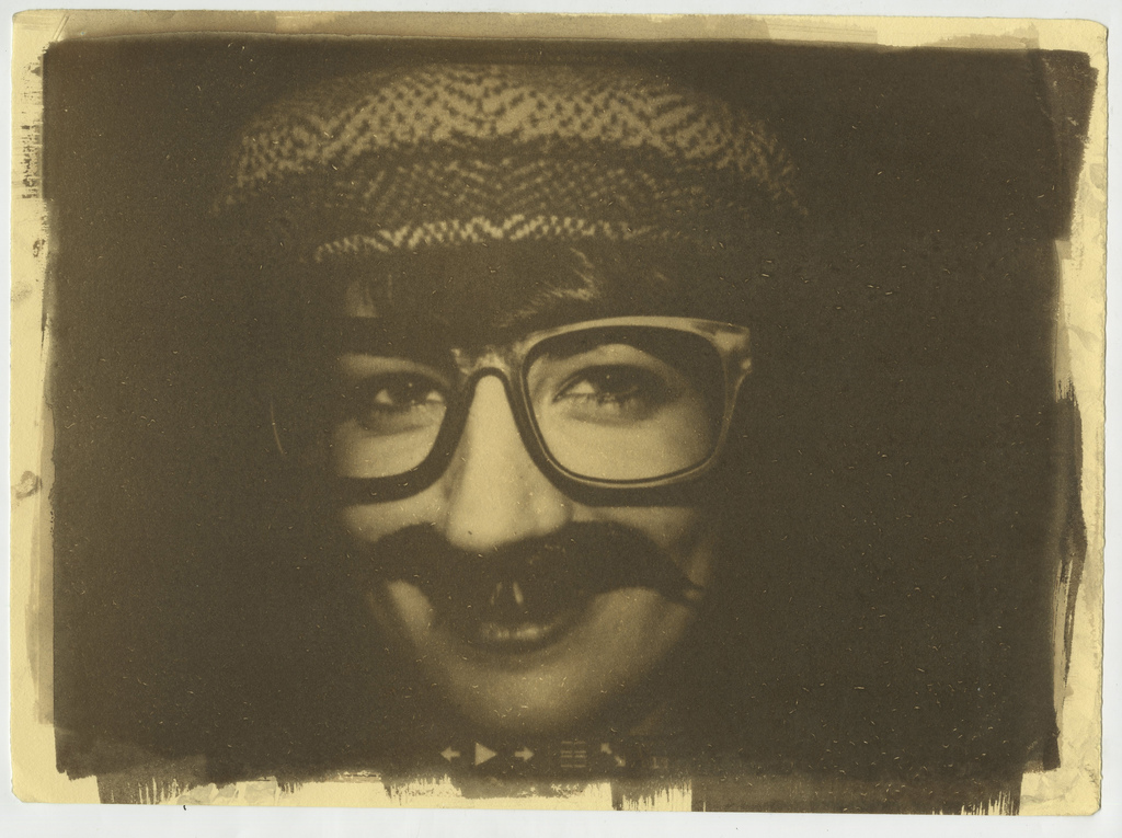 The first photo is part of a series "Six Moustaches" (2009) produced by photographing a Mac OS slideshow with kodak direct duplicating film, creating a 12x18" negative with the resulting intrapositive and contact printing printing the final with a VanDyke Brown solution.